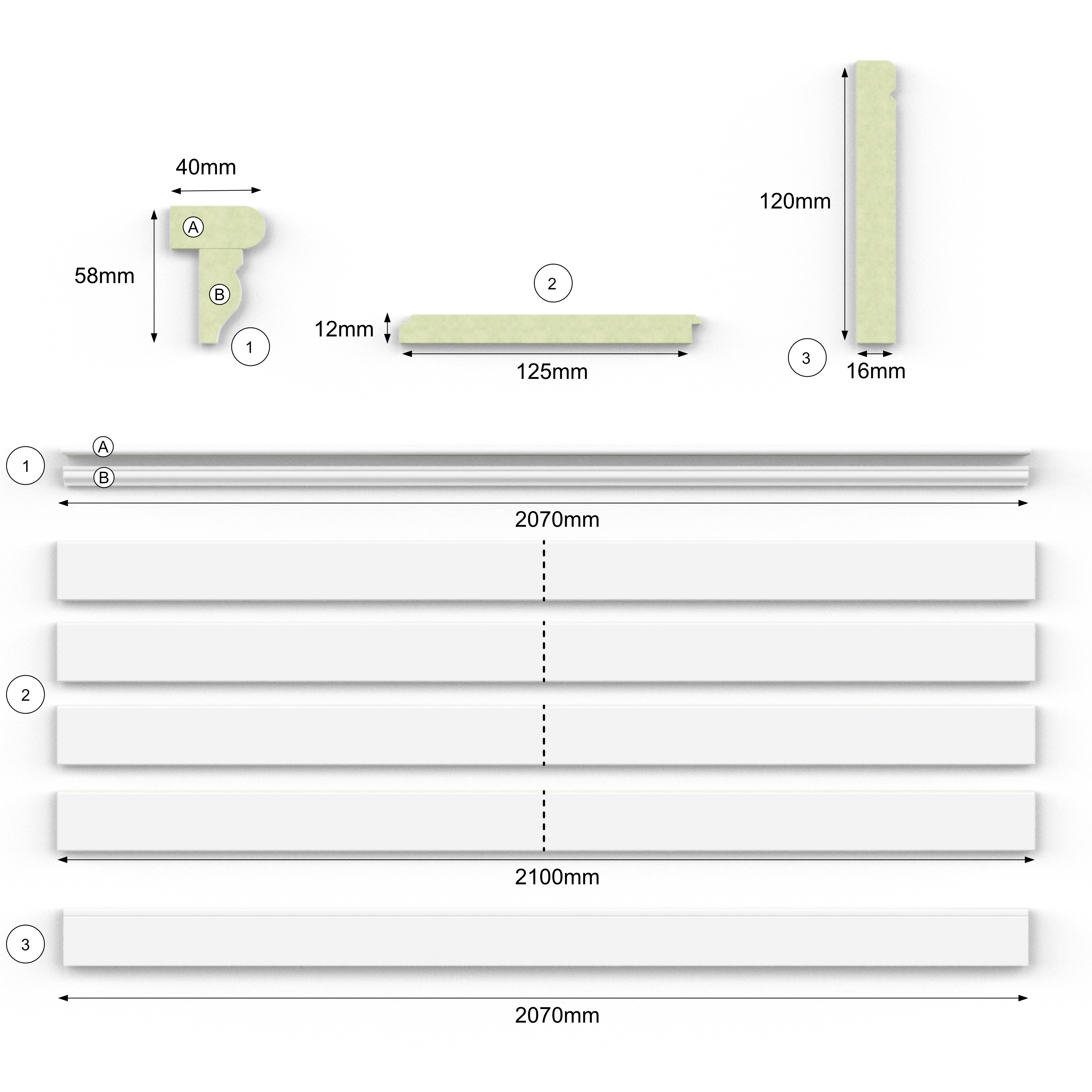 Boazerię można dopasować do wysokości od 80 do 118 cm, przycinając tylko listwę środkową.
