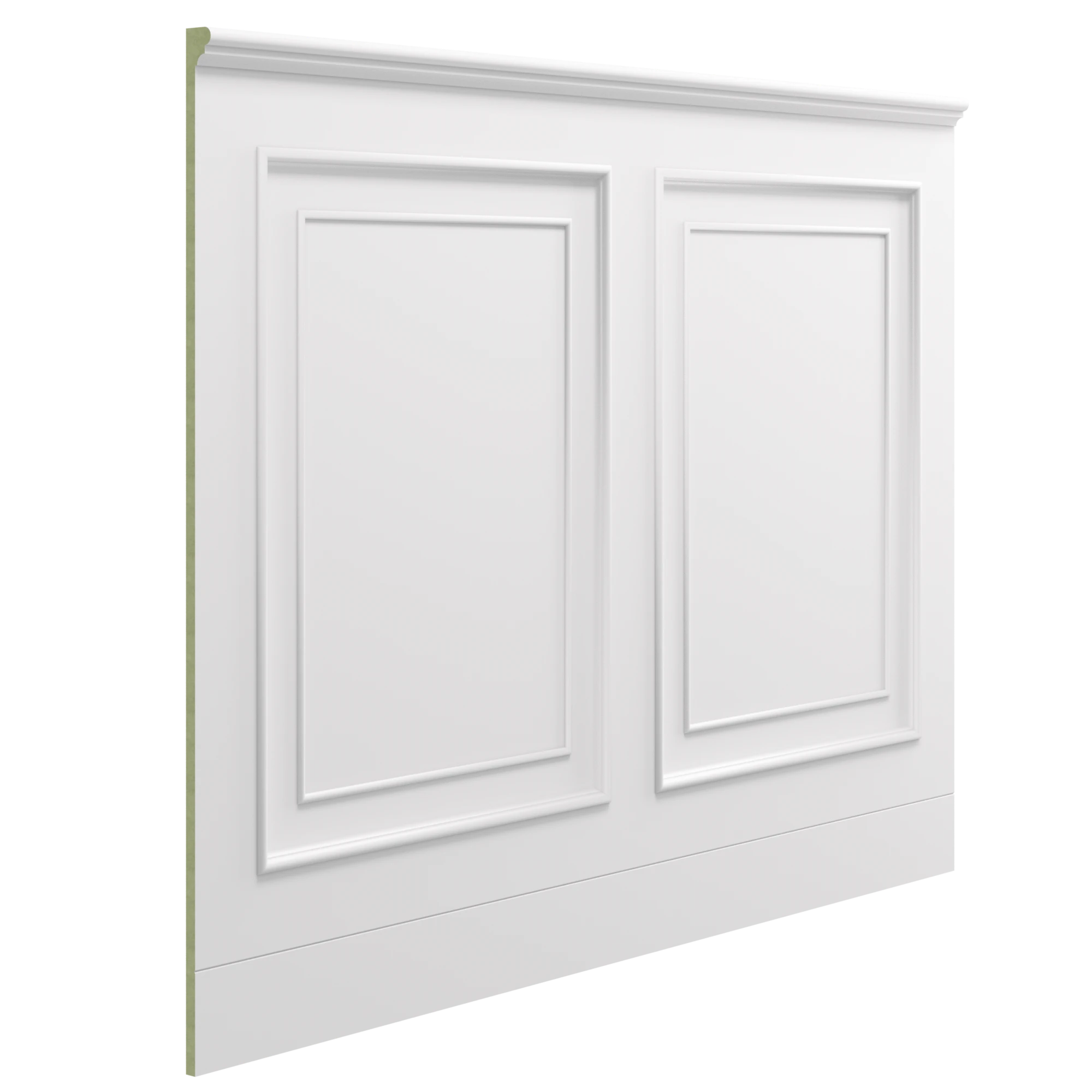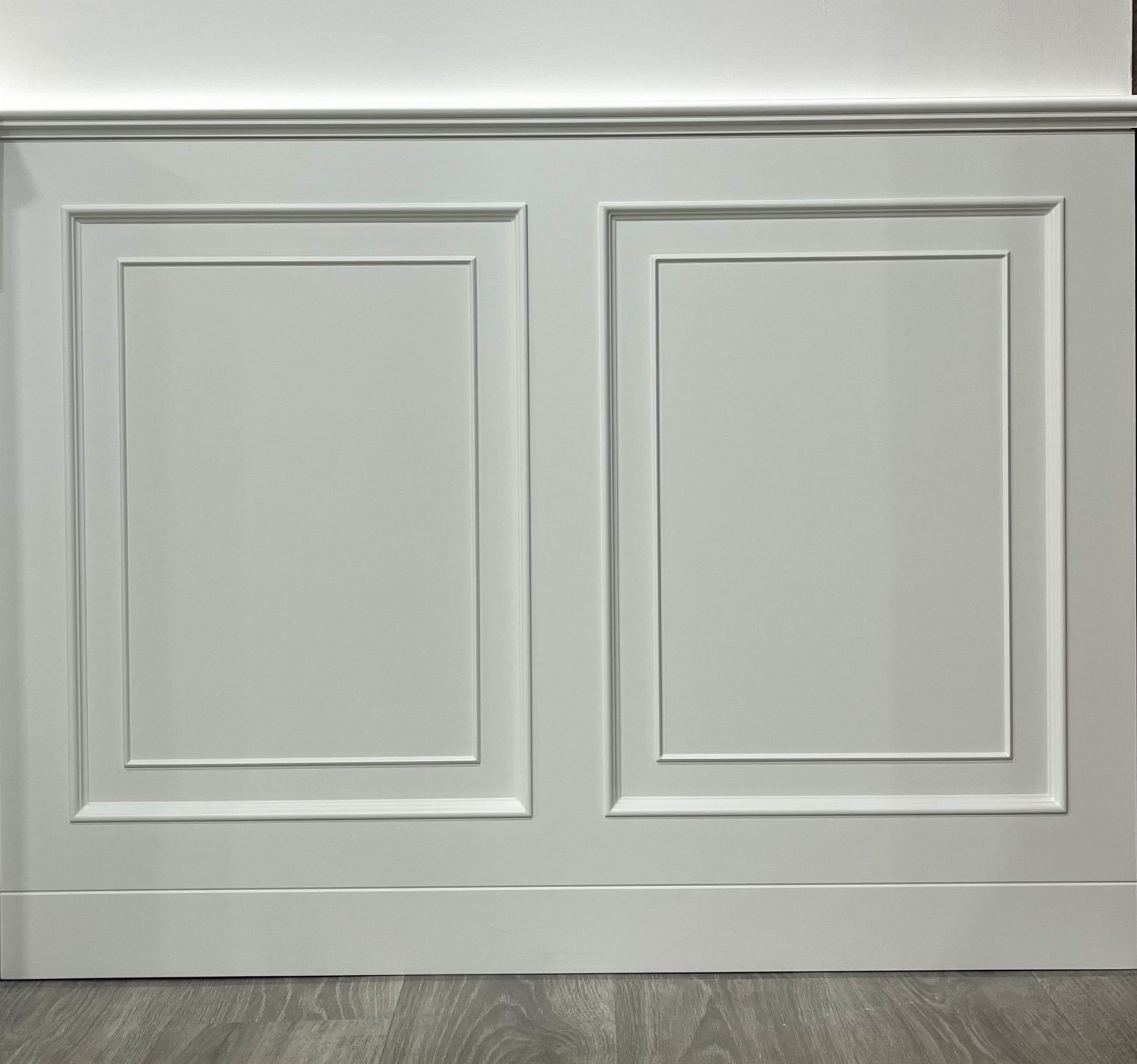 Prezentowany model opiera się na klasycznym podziale ściany z wyraźnie profilowanymi ramkami o fazowanych krawędziach. Głębokie frezowanie oraz precyzyjnie wyprowadzona geometria tworzą efekt trójwymiarowości, który doskonale pracuje ze światłem – zarówno naturalnym, jak i sztucznym (np. oświetleniem liniowym LED).