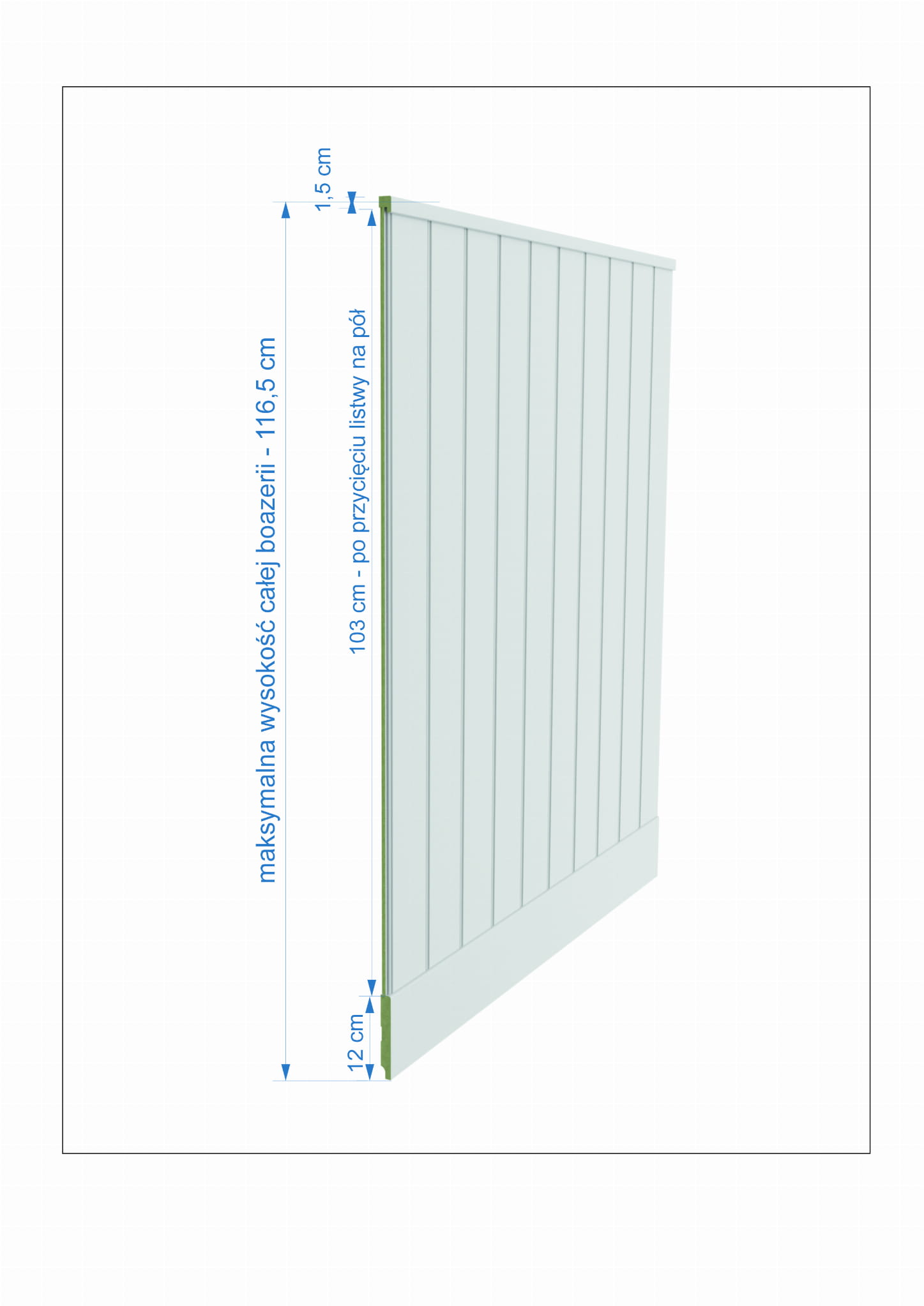 Wieniec - listwa górna do boazerii VERTO o wym. 18/20/2070 kolor RAL 9003 – gotowa do montażu