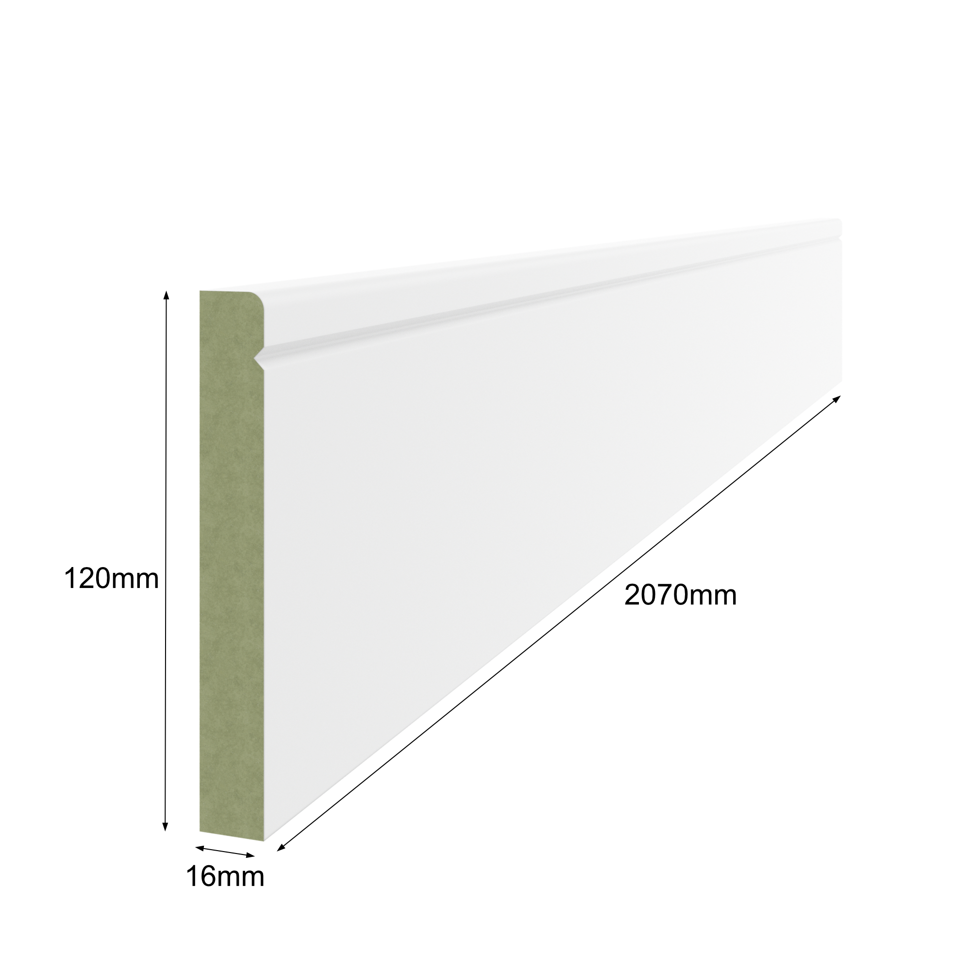 Listwa dolna przypodłogowa do boazerii GRANDE i ROYAL o wym. 16/120/2070 kolor RAL 9003 – gotowa do montażu