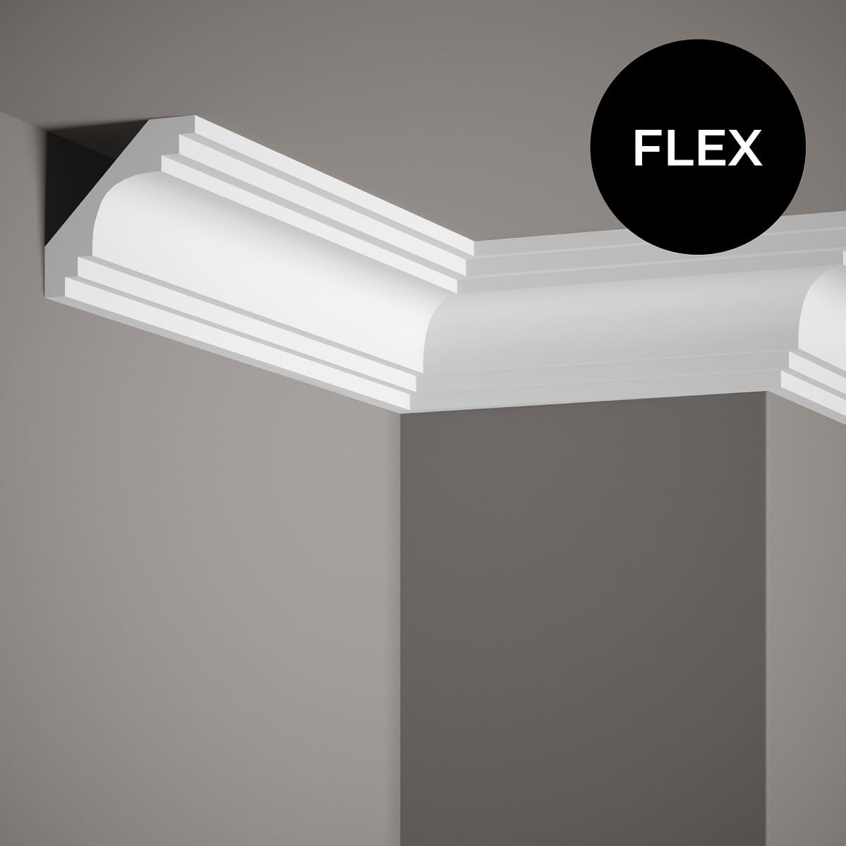 Listwa sufitowa gładka MDB152 Flex to elastyczna listwa, przeznaczona do stosowania na półokrągłych lub nierównych ścianach. Zalecamy malowanie listwy po przyklejeniu jej do ściany.