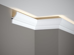 Listwa sufitowa oświetleniowa MD070 wykonana z ekologicznego tworzywa PolyForce, które jest odporne na wilgoć, uszkodzenia i oddziaływanie promieni UV. Przygotowana do malowania na dowolny kolor.