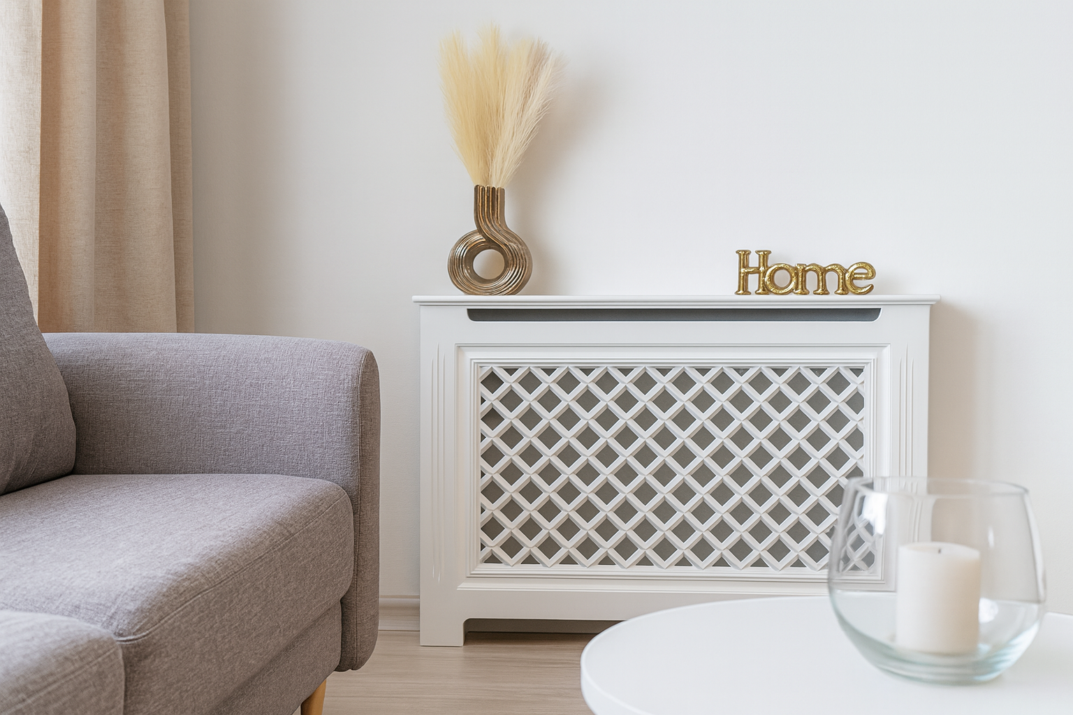 Maskownica na kaloryfer to sprawdzony sposób na podniesienie walorów wizualnych każdego wnętrza bez zakłócania przepływu ciepła. Wiele naszych modeli, w tym popularna zabudowa grzejnika z parapetem, pełni również rolę praktycznej półki, idealnej na dekoracje lub podręczne przedmioty. Kluczem do spójnej aranżacji są detale. Dlatego oferujemy pełną personalizację każdej naszej zabudowy – zarówno do kaloryferów żeliwnych żeberkowych, jak i panelowych. Możesz je zamówić w dowolnym wymiarze, idealnie dopasowanym do Twojego modelu. Co więcej, lakierujemy je na wybrany kolor z palety RAL lub NCS, co sprawia, że maskownica stanie się integralną częścią wystroju – od klasycznej elegancji, po minimalistyczny, nowoczesny styl. Dzięki takiej zabudowie nawet masywny grzejnik żeliwny nabiera wizualnej lekkości, idealnie komponując się z resztą wnętrza.